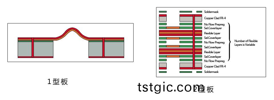 软板(FPC)和硬板(PCB)粘贴成一体,粘贴处无镀覆孔连接,层数多于一层。